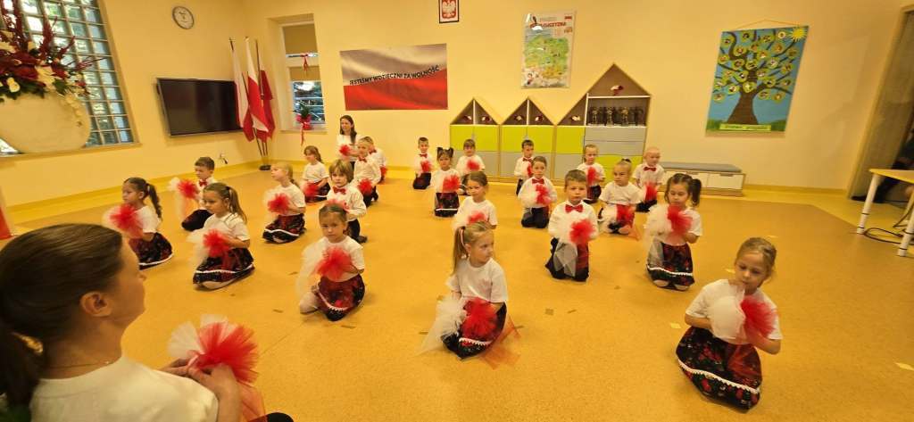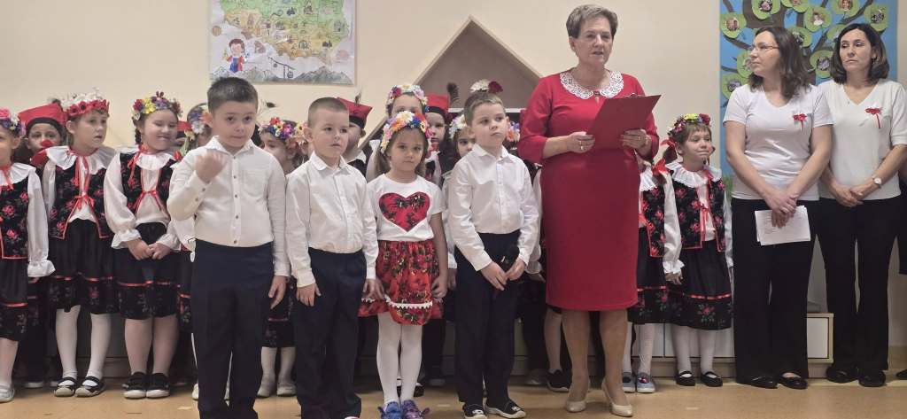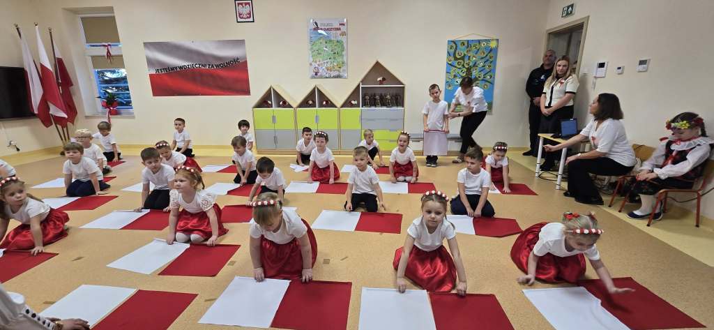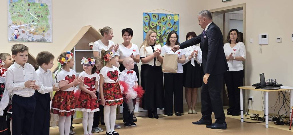 W przedszkolu odbyła się uroczystość z okazji Narodowego Święta Niepodległości „Jesteśmy wdzięczni za wolność”. Licznie przybyli rodzice i zaproszeni goście: Poseł Rzeczypospolitej Polskiej Grzegorz Wożniak, Starosta Powiatu Garwolińskiego Iwona Kurowska, Burmistrz Miasta i Gminy Pilawa Albina Łubian, ks. Proboszcz Andrzej Banasiuk, mieszkańcy Pilawy Państwo Chomiccy Maria i Bogusław oraz znakomici żołnierze z Wojskowego Centrum Rekrutacji w Garwolinie – kpr. Natalia Kania i por. Łukasz Domański, z Armii Krajowej – mjr. Marian Cabaj i Antoni Garwoliński, z 1 Warszawskiej Brygady Pancernej – st. kpr. Ernest Mikulski , z 6 Mazowieckiej Obrony Terytorialnej – szer. Anna Wójcik i szer. Agnieszka Wilczek, z Jednostki Wojskowej w Pilawie – st. chor. szt. Marek Andrzejczyk , Przewodniczący Rady Rodziców i były st. kpr. Żandarmerii Wojskowej w Mińsku Mazowieckim Sebastian Dąbrzalski i zastępca przewodniczącego Rady Rodziców – Paulina Kwiatkowska – Serafin wraz z przedstawicielami Rady Rodziców. Dzieci wyraziły wdzięczność za wolność w radości, tańcu, wierszu i piosence. Występ przedszkolaków dzieci 5 i 6 letnich był bardzo ciekawy , bogaty i wzruszający. Dzieci wręczyły żołnierzom statuetki i podziękowały za „Służbę Ojczyźnie”. Uroczystość wzbudziła u wszystkich wzruszenie i łzy , a szczególnie u żołnierzy, którzy przeżyli czasy wojny.