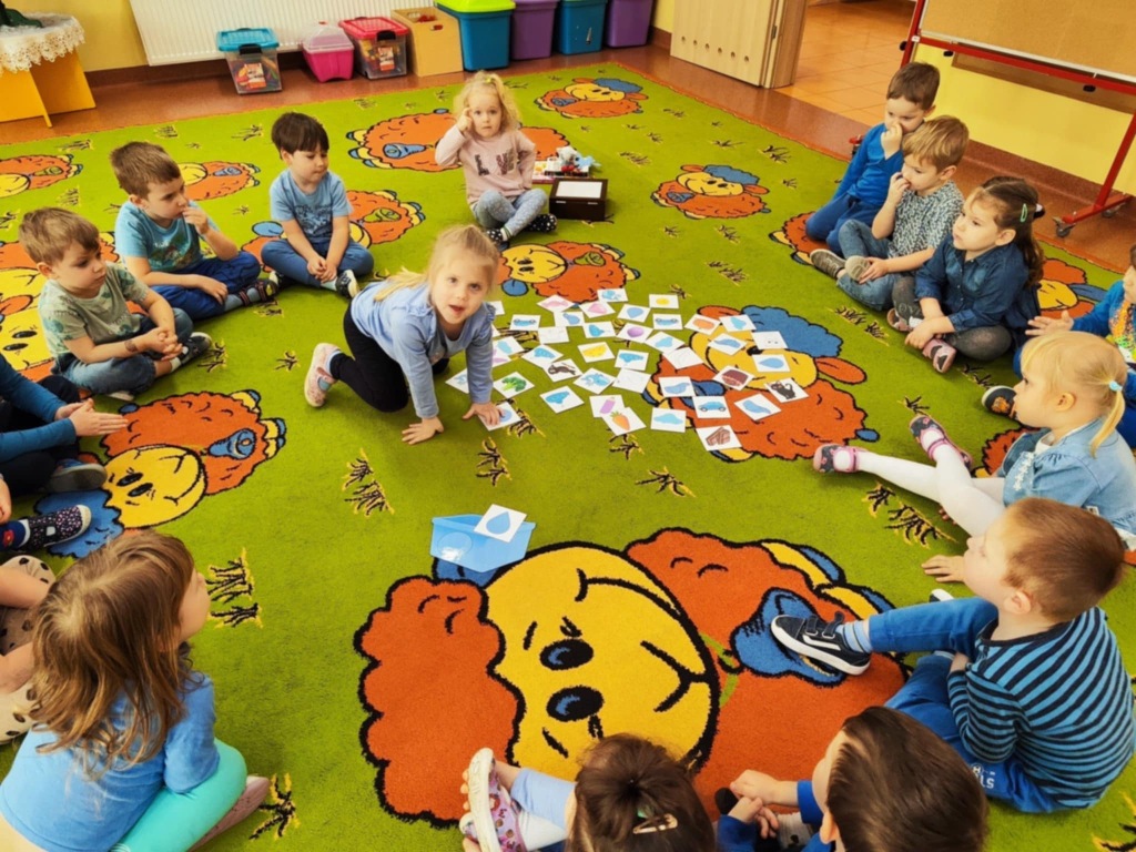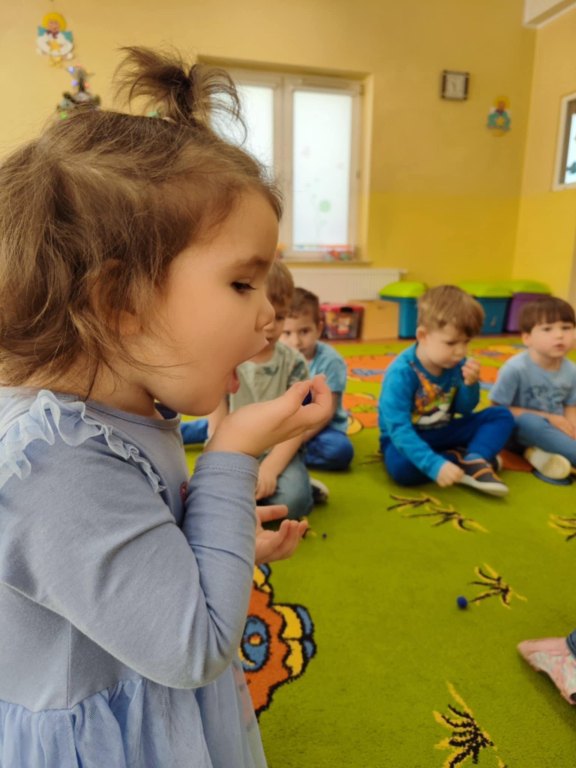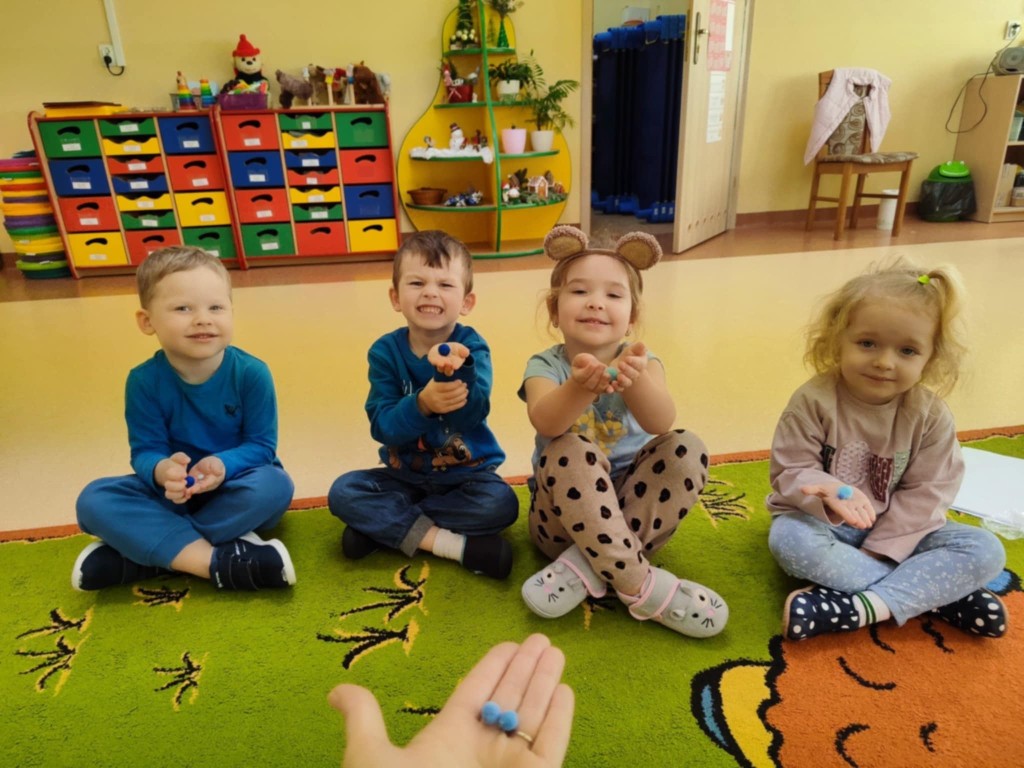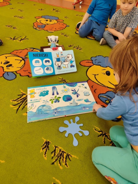 Grupa II poznała kolejny kolor w ramach projektu „Poznajemy kolory z Kicią Kocią”- tym razem niebieski. Dzieci szukały niebieskiego na swoich ubrankach, ilustracjach i w sali. Oglądały książeczki, bawiły się z niebieskimi pomponikami i malowały farbami. Mamy nadzieję, że kolejny kolor będzie już dobrze znany naszym Maluszkom.