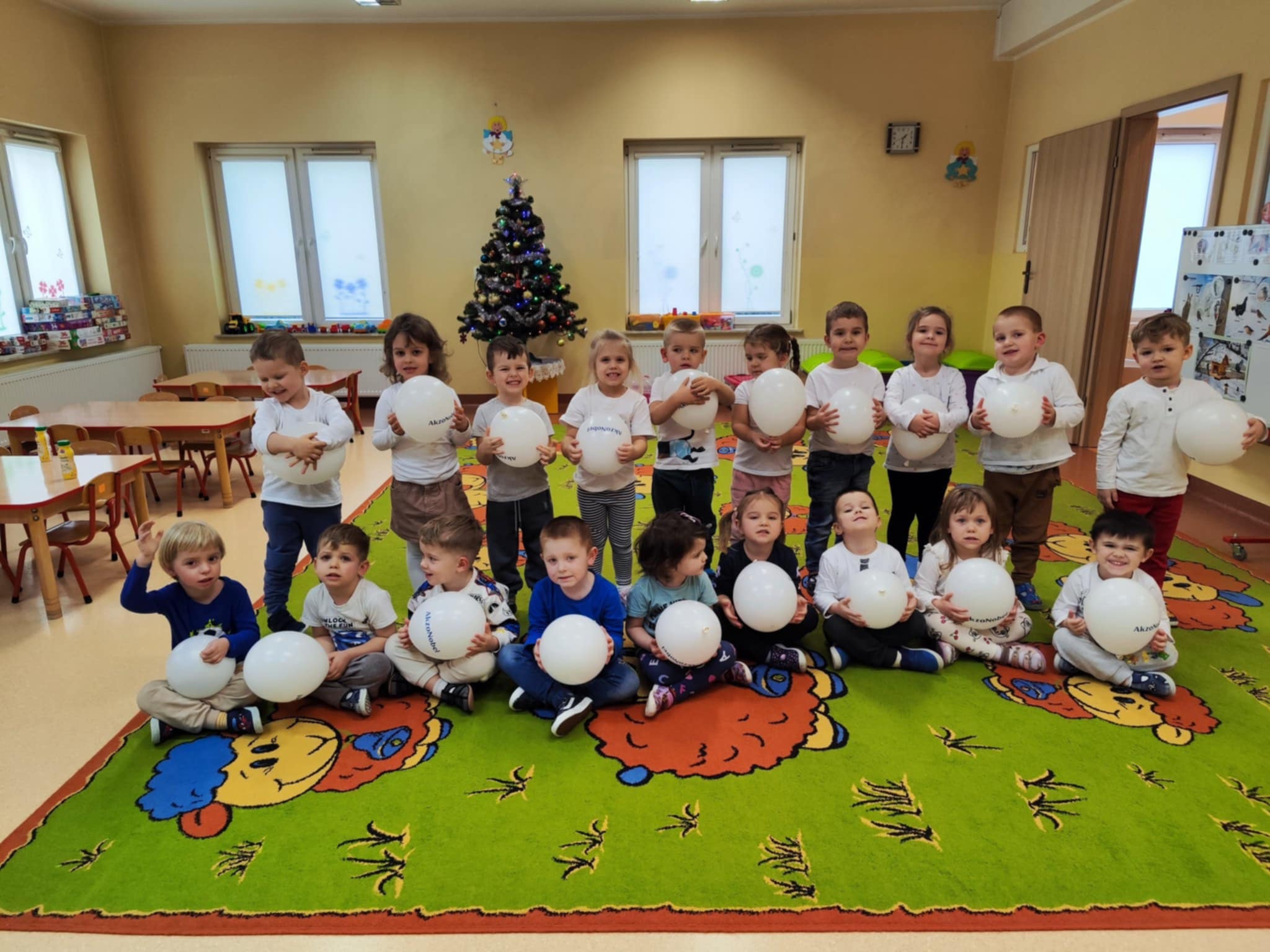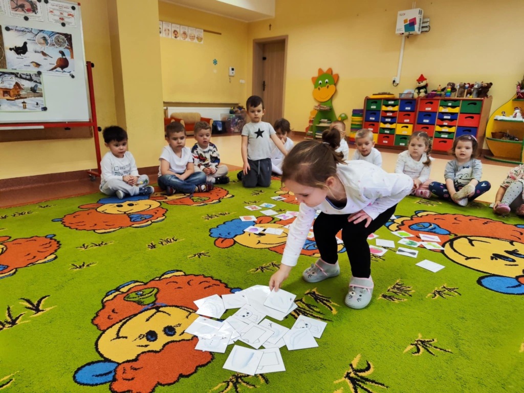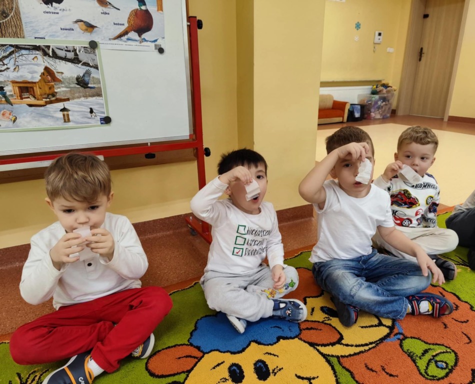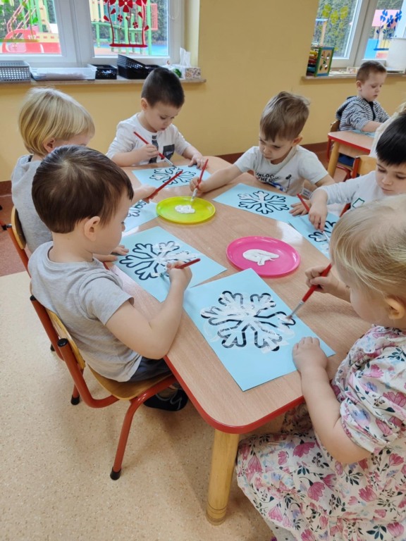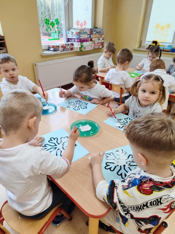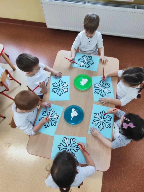 3 latki z grupy II rozpoczęły cykl zajęć „Poznajemy kolory z Kicią Kocią”. Pierwszym poznanym kolorem był biały – tak jak zimowy krajobraz. Dzieci uczestniczyły w różnorodnych zabawach z kolorem białym, a na koniec wykonały pracę plastyczną. Do domu wyszły z białymi balonikami, odznakami i wiedzą na temat rozpoznawania koloru białego.