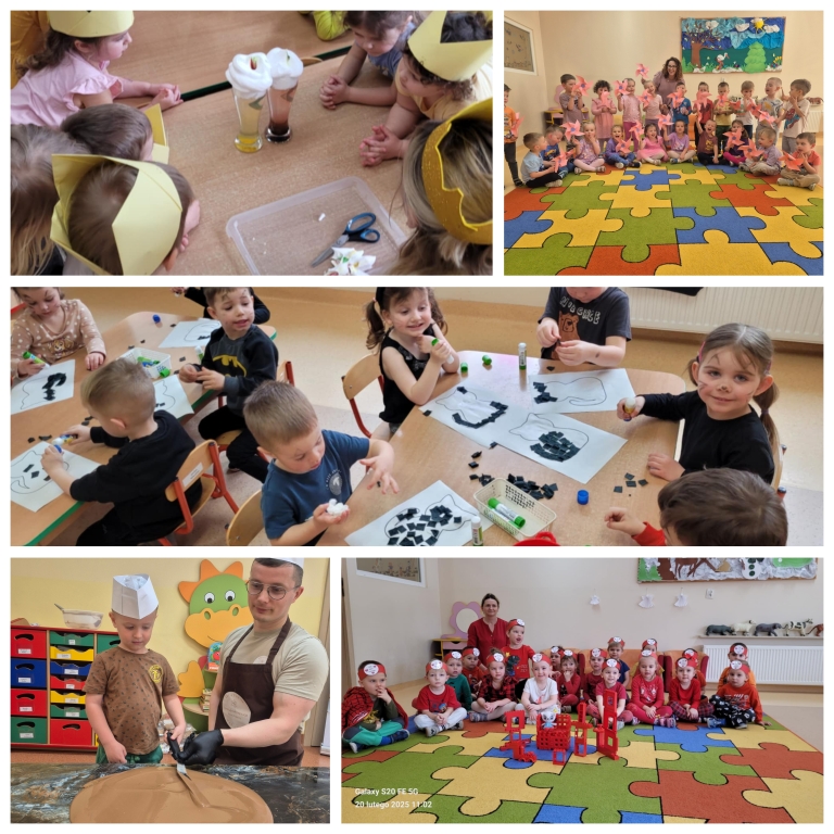 W efekcie tych działań powstały wspaniałe, własnoręcznie wykonane przez dzieci prace plastyczne. Zwieńczeniem cyklu zajęć było poznanie koloru brązowego, który dzięki wsparciu Rodziców mogliśmy połączyć z udziałem w ,,Czekoladowych warsztatach” podczas których dzieci mogły poszerzyć wiedzę na temat czekolady. Każdy miał możliwość własnoręcznie wykonać swoją unikatową tabliczkę czekolady,  którą mógł zabrać do domu, by skosztować ją w miłym towarzystwie.