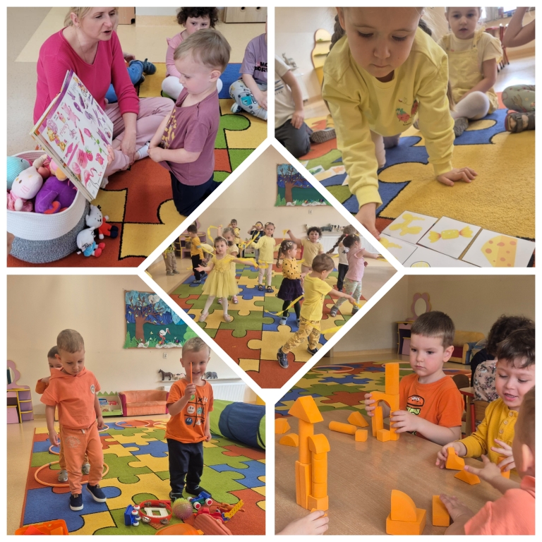 Zajęcia miały na celu edukację dzieci w zakresie rozpoznawania kolorów podstawowych i pochodnych, ale również rozwijanie ich umiejętności językowych, społecznych i poznawczych, a także rozbudzenie zainteresowań czytelniczych. Dzieci miały możliwość bawić się i eksperymentować z kolorami poprzez liczne zabawy w których z chęcią aktywnie uczestniczyły. Podczas zajęć przedszkolakom towarzyszyły maskotki Kici Koci i Nunusia, czyli bohaterów książek z cyklu ,,Kicia Kocia” Anity Głowińskiej na podstawie których opierały się zajęcia. W trakcie każdego spotkania dzieci miały również możliwość obcowania z poznanym kolorem poprzez sztukę rozwijając swoja kreatywność i pomysłowość.