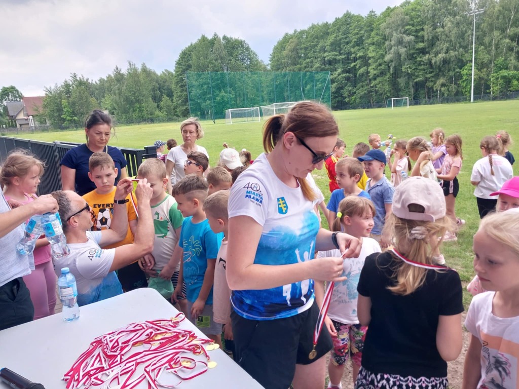 05 czerwca grupy 6 – latków z naszego przedszkola uczestniczyły w Spartakiadzie Sportowej na stadionie miejskim. Celem tego wydarzenia było propagowanie wśród dzieci zdrowego stylu życia oraz zachęcanie do aktywnego spędzania  czasu.  Przedszkolaki dzielnie pokonywały wszystkie konkurencje przygotowane przez członków Stowarzyszenia Stopka Pilawa. Wysoka temperatura i mocno świecące słońce nie przeszkadzały dzieciom w znakomitej zabawie na świeżym powietrzu. Była to dla nich świetna lekcja zdrowej rywalizacji i współpracy w zespole. W nagrodę za aktywny udział, każdy zawodnik otrzymał pamiątkowy medal.