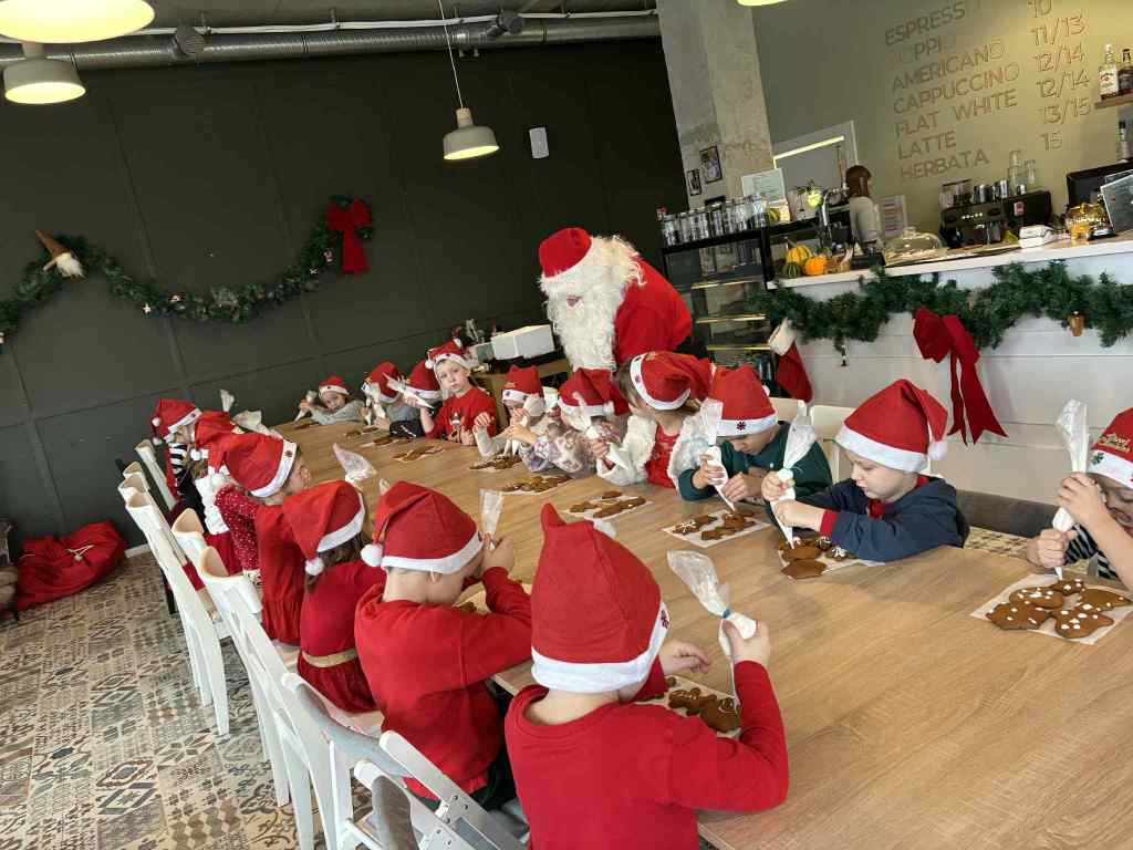 4 grudnia przedszkolaki z grupy V wybrały się na warsztaty świąteczne ,,Dekorowanie pierników,, do Restauracji ODSKOCZNIA. Na warsztatach, niespodziewanie, pojawił się Święty Mikołaj, który pomagał dzieciom dekorować pierniczki i czuwał na ich bezpieczeństwem:) Na zakończenie pysznych warsztatów Święty Mikołaj rozdał dzieciom prezenty i życzył wszystkim WESOŁYCH ŚWIĄT!!