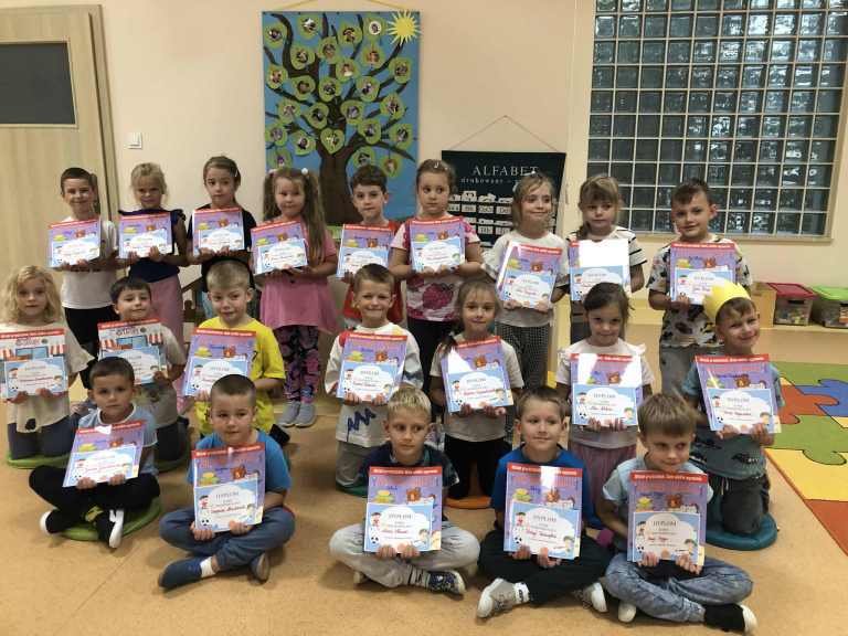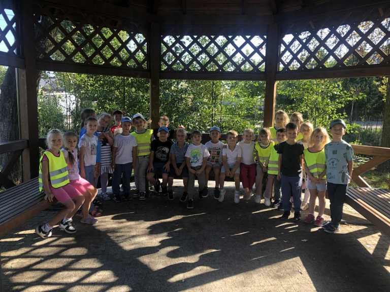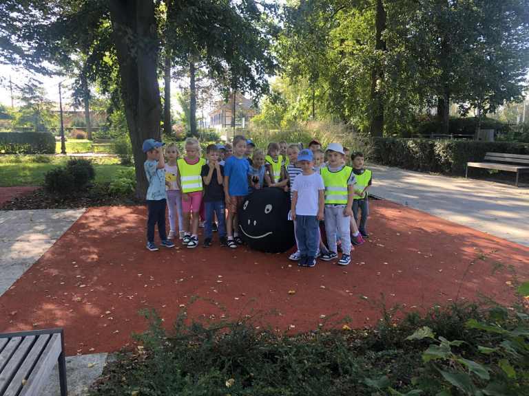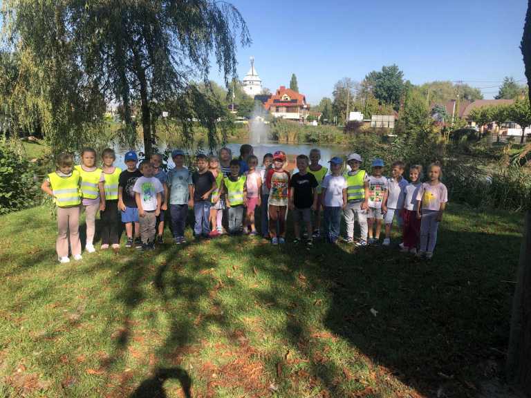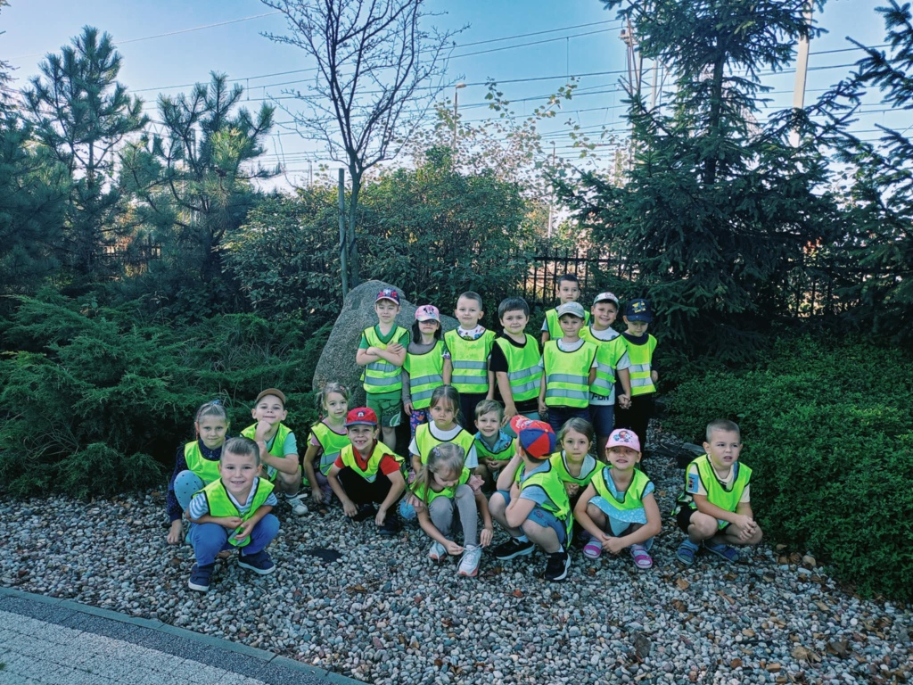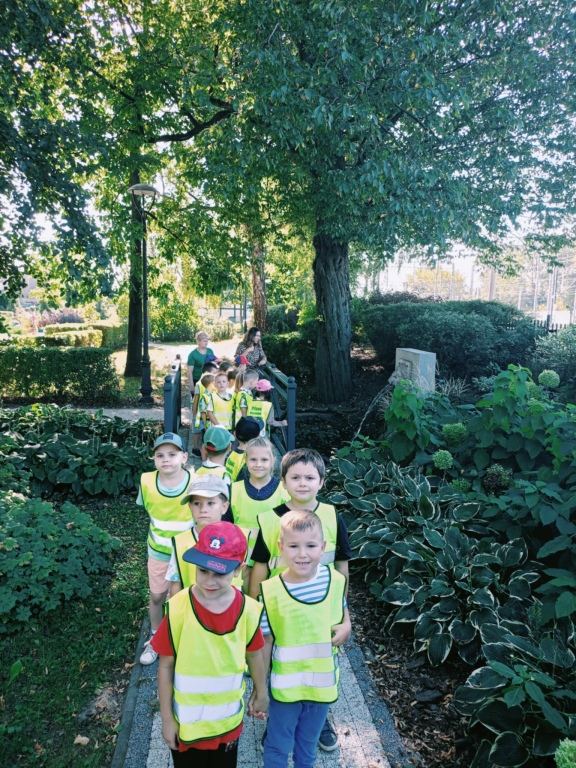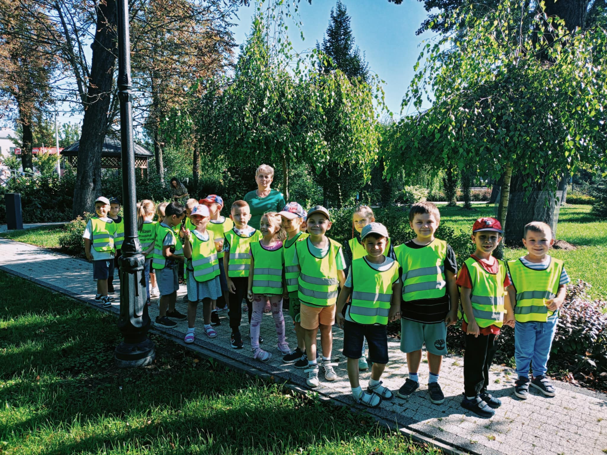W pierwszy Dzień Jesieni 22.09.2025r. dzieci 6letnie wybrały się na wycieczkę pieszą do pobliskiego parku. Rano obejrzeliśmy film na tablicy multimedialnej „Pierwszy Dzień Jesieni” podczas, którego dowiedzieliśmy się – dlaczego drzewa tracą liście? Czy wszystkie to robią? Jak rozpoznać owoce drzew i dopasować je do odpowiednich liści? Jakie są oznaki nadchodzącej nowej pory roku – jesieni? Podczas wycieczki rozpoznawaliśmy i nazywaliśmy wybrane drzewa oraz ich owoce, zwierzęta i rośliny spotkane w parku. Wymienialiśmy oznaki Jesieni, szukaliśmy „Babiego lata”, zbieraliśmy „Dary – Jesieni”. Na koniec przytuliliśmy się do drzewa w ramach akcji organizowanej przez Strażników Lasów, mającej na celu zwrócenie uwagi na problem pożarów lasów oraz promowanie drzewoterapii i szacunku do przyrody. Po przyjściu wymienialiśmy spostrzeżenia z wycieczki i segregowaliśmy „dary jesieni”. Przyniesione „dary” wzbogaciły nasz „Kącik Przyrody,,.