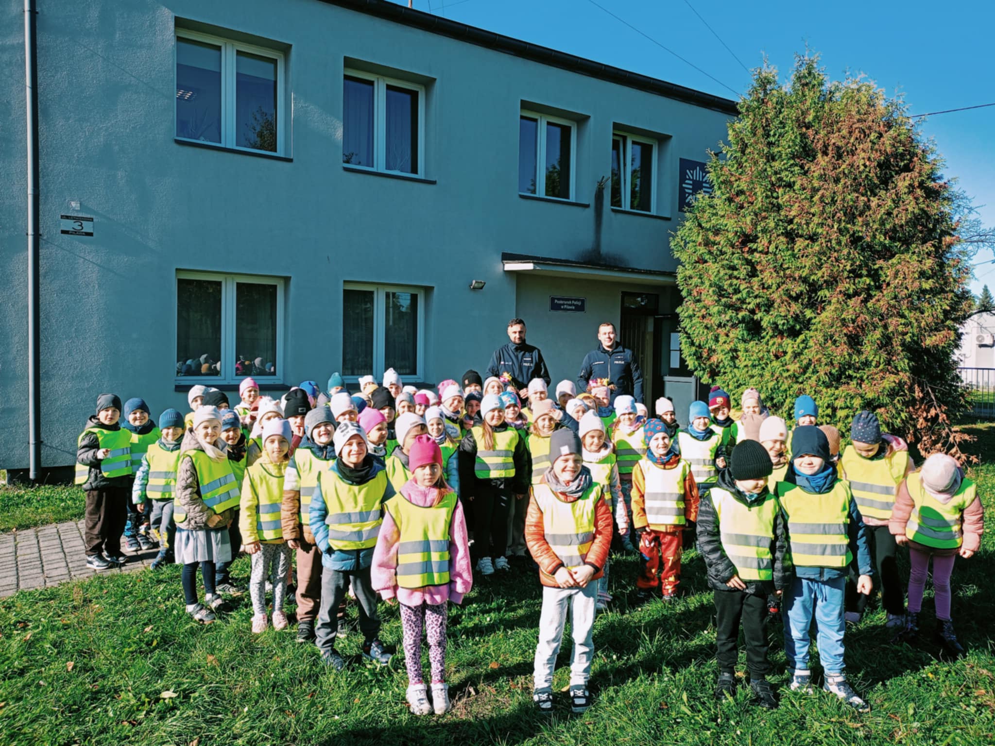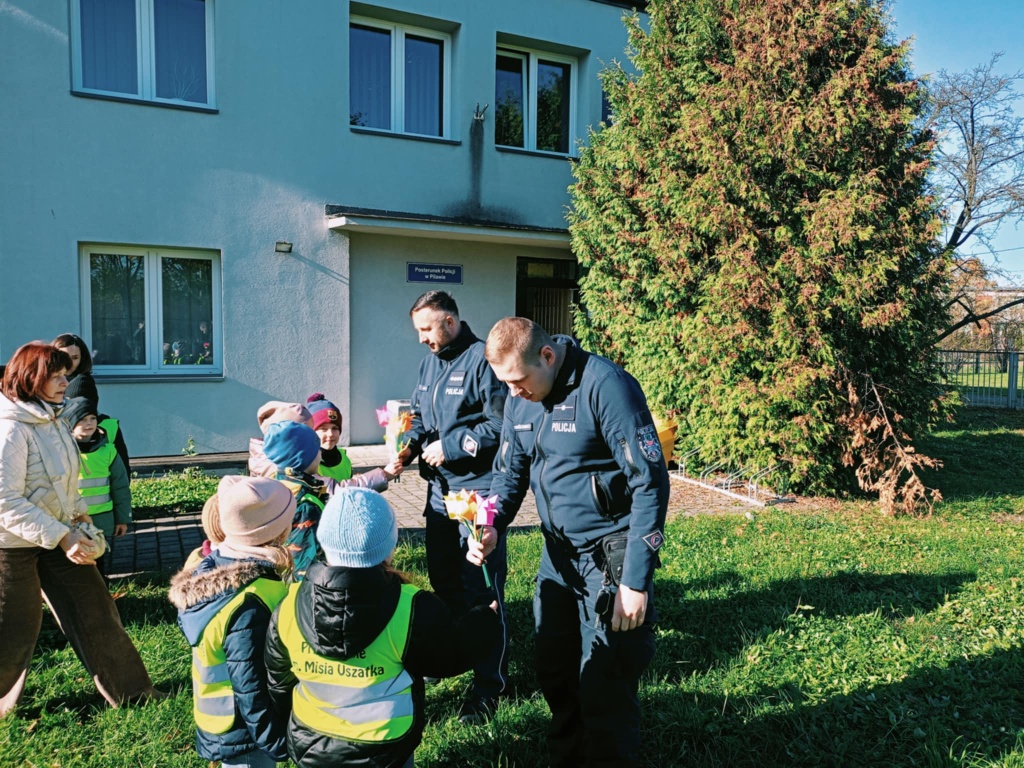 W poniedziałek przedszkolaki z grup XII, XIV i XV odwiedziły Posterunek Policji w Pilawie. Dzieci mieli okazję z bliska przyjrzeć się pracy policjantów, poznać ich codzienne obowiązki oraz dowiedzieć się, jak dbać o swoje bezpieczeństwo.