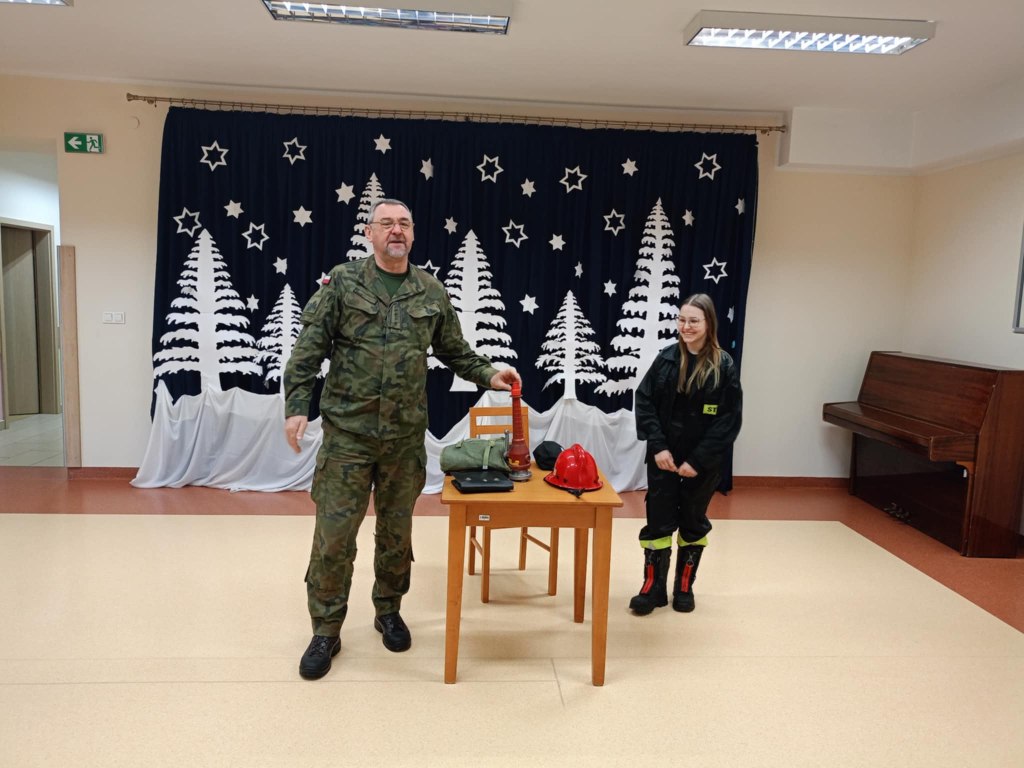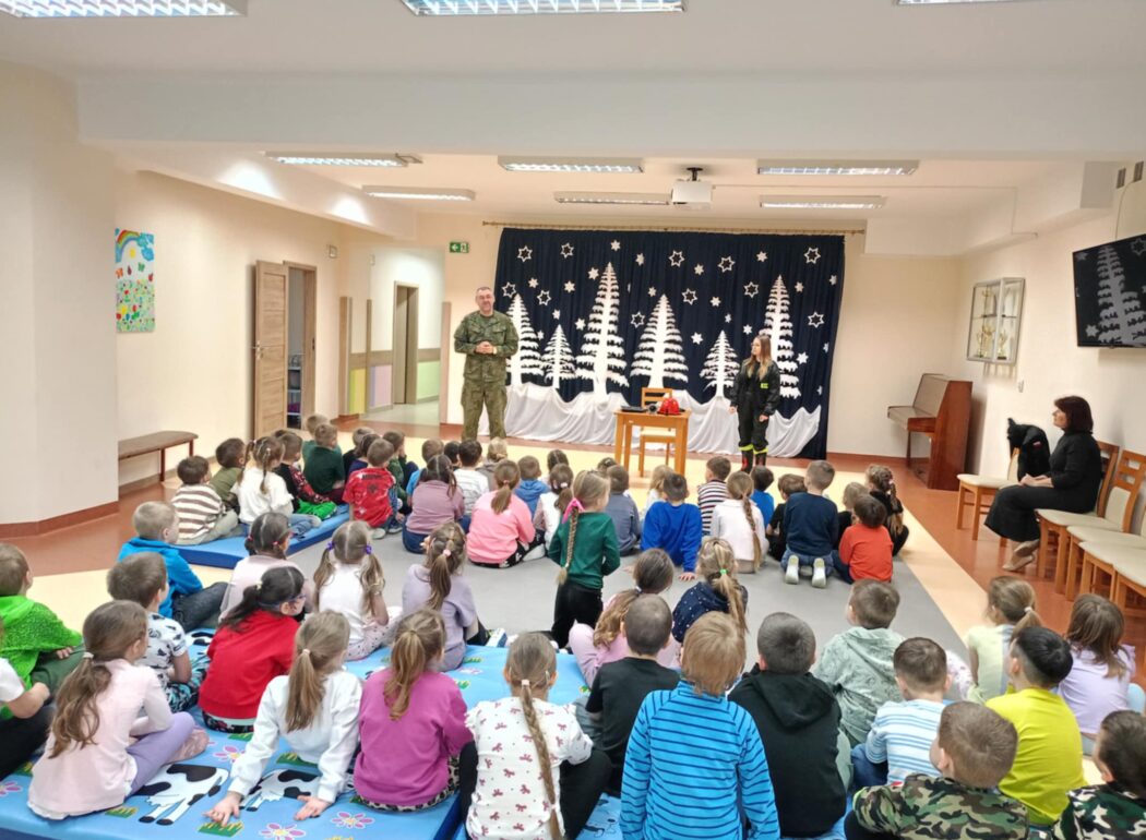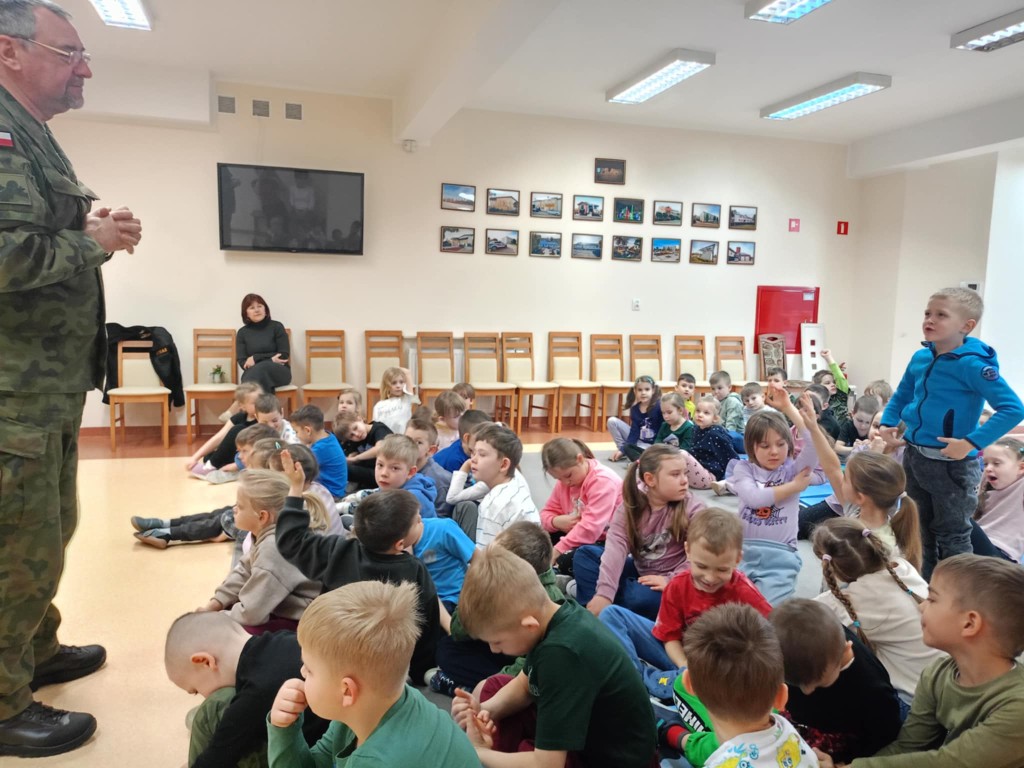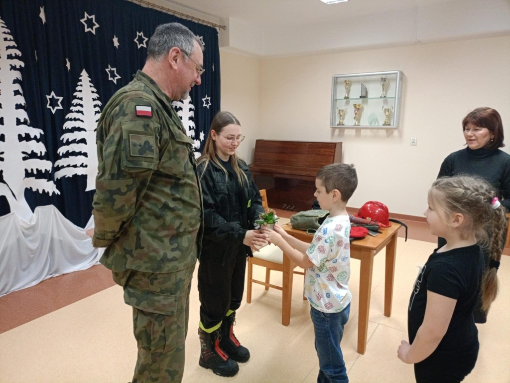 W poniedziałek 23 stycznia gościliśmy w naszym przedszkolu niezwykłych gości. Dzieci spotkały się z żołnierzem zawodowym starszym chorążym Panem Markiem Andrzejczykiem oraz druhną z OSP Lipówki Panią Magdaleną Parzyszek.