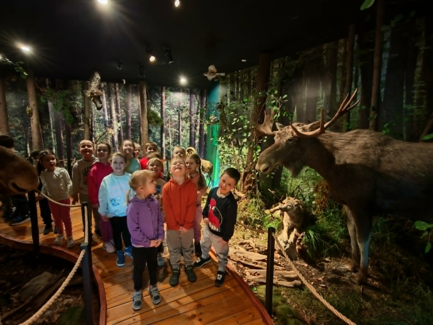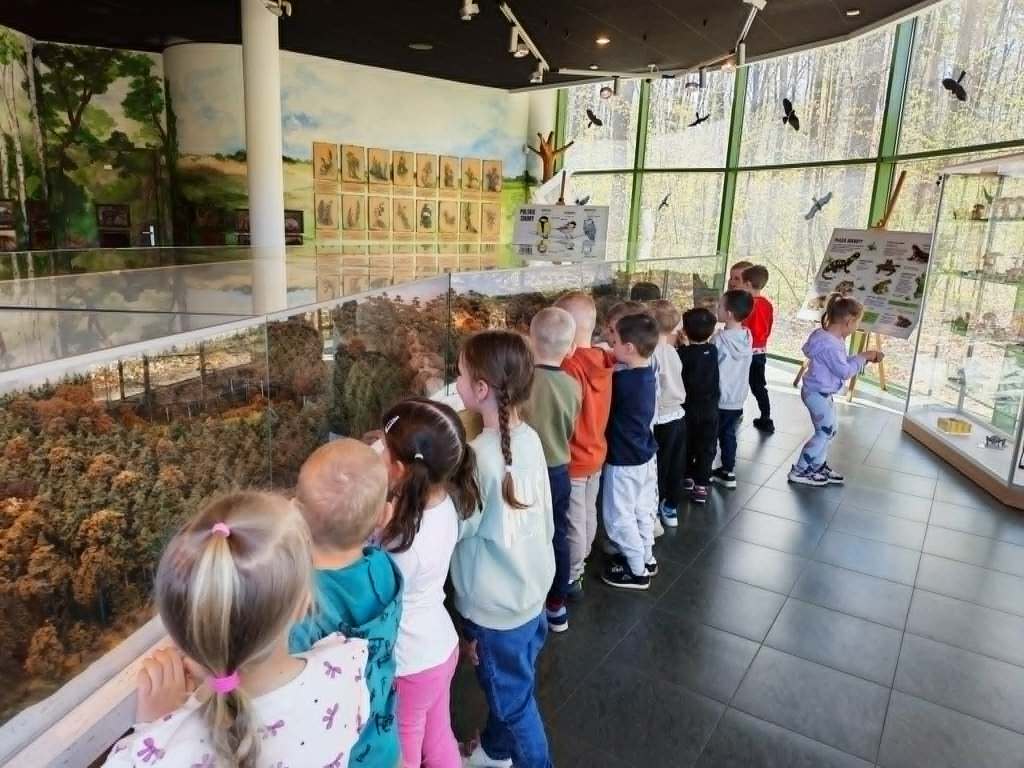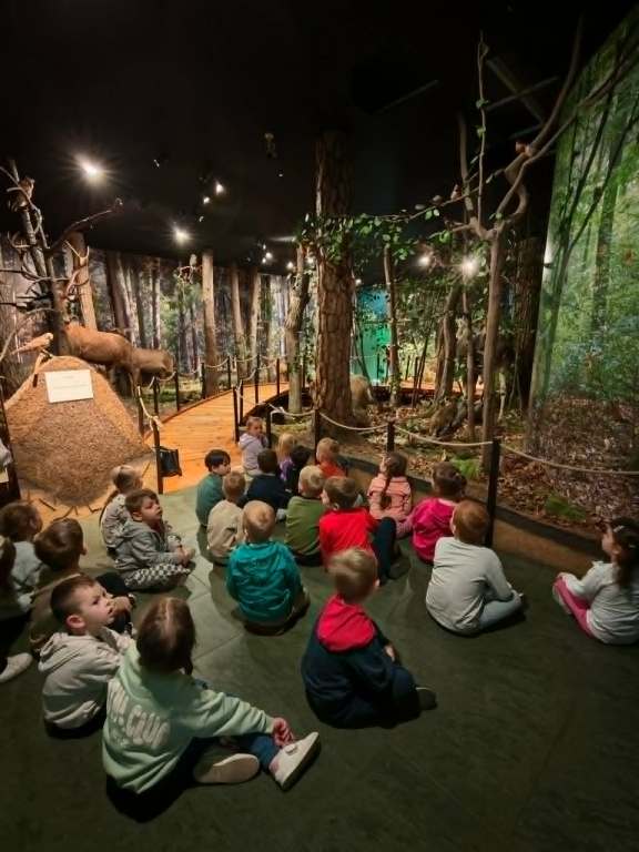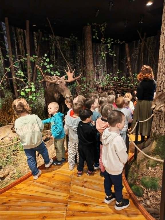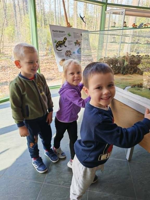 W dniach 23 i 24 kwietnia wszystkie dzieci z grup 4 latków pojechały na swoją pierwszą wycieczkę autokarową- wybrały się do Nadleśnictwa w Celestynowie. Zapoznały się z ekosystemem leśnym- oglądały zwierzęta leśne, słuchały ich odgłosów, ciekawostek z ich życia, dotykały sierści niektórych zwierząt, przyjrzały się ogromnej makiecie lasu. Na koniec wycieczki z ogromną radością skorzystały z placu zabaw. Dzieci wróciły szczęśliwe i bogatsze o nowe doświadczenia.