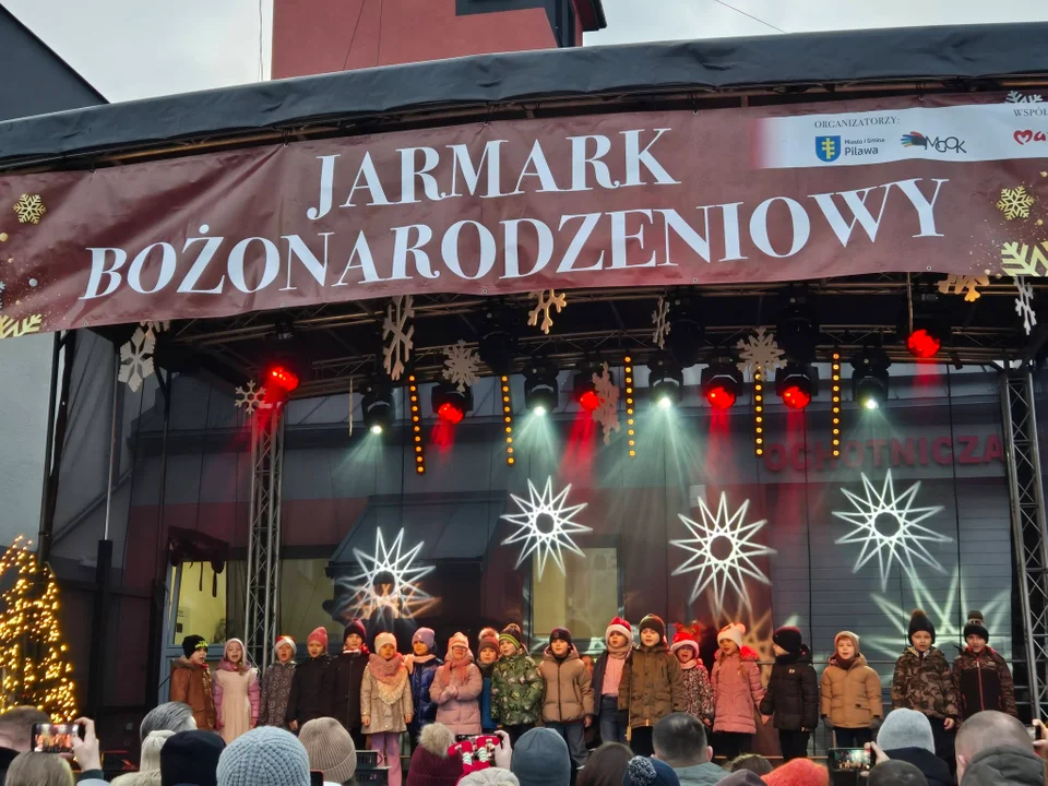 W niedzielę 14 grudnia 2025r. jak co roku podczas Jarmarku Bożonarodzeniowego plac przy Miejsko-Gminnym Ośrodku Kultury w Pilawie wypełnił się świąteczną atmosferą oraz radością ze wspólnego spotkania. Podczas jarmarku nie mogło zabraknąć części artystycznej – występ przedszkolaków, który skradł serca publiczności i wprowadził wszystkich w radosny, bożonarodzeniowy nastrój.