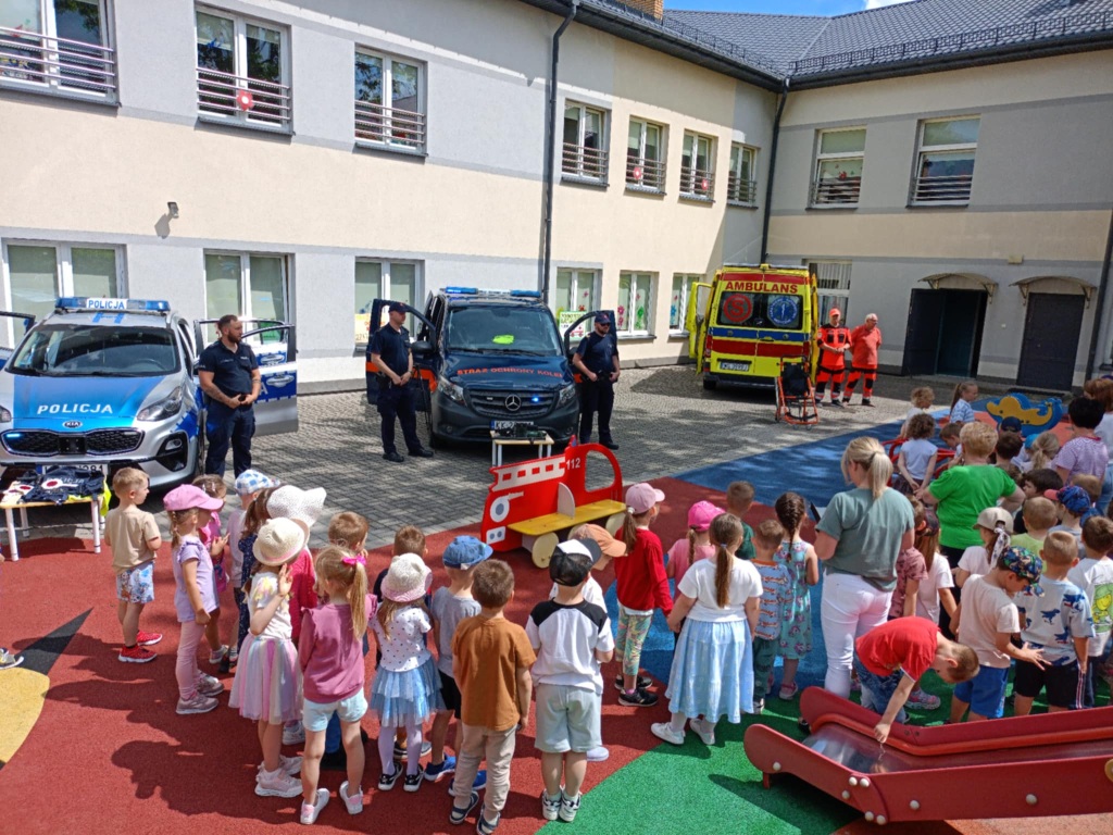 Dnia 2 czerwca 2025r. w Przedszkolu w Pilawie odbyły się zajęcia profilaktyczne na temat bezpieczeństwa i troski o zdrowie pod hasłem: ,,Jestem bezpieczny, bo wiem kogo prosić o pomoc,,. W zajęciach udział wzięli: Policja, Straż Pożarna, Straż Ochrony Kolei, Pogotowie Ratunkowe.