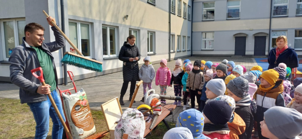 Grupa VIII z okazji rozpoczęcia wiosny uczestniczyła w spotkaniu z ogrodnikiem. Dzieci dowiedziały się na czym polega jego praca, oraz jakie prace należy wykonać w ogrodzie wczesną wiosną. Pan ogrodnik pokazał jakie narzędzia wykorzystuje w swojej codziennej pracy. Ponadto dzieci zasadziły swoje cebulki, z których wyrośnie smakowity szczypiorek. 4 latki wzięły udział w konkursie wiedzy o wiośnie, oraz zjadły smakowite ciasto przygotowane przy uprzejmości jednego z rodziców.